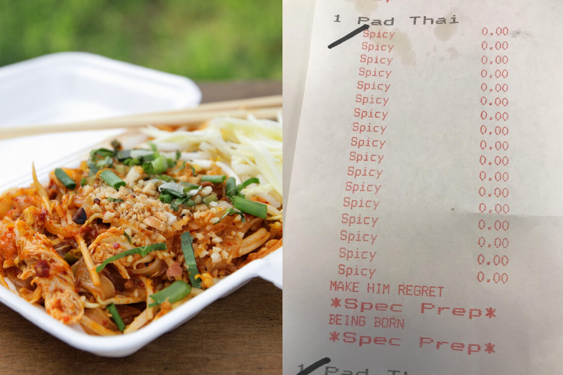 Pad Thai Receipt Warns Customer He Ll Regret Being Born Thrillist